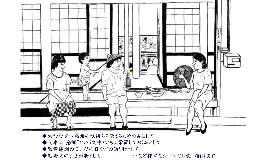【原材料】 大豆(国産、遺伝子組換えでない)、小麦、食塩、アルコール ※1個当たりの内容量150ml 【こだわり】 厳選吟味された国内産丸大豆と武蔵野の大地で育った小麦をはじめとして、麹や天日塩なども国産原料を使用。 昔ながらの杉の木桶で丁寧に仕込んだ天然醸造で造られたこだわりの醤油です。添加物・保存料は使用していないため、 醤油本来の旨味と香りを感じることができます。 醤油というシンプルな調味料だからこそ、素材が大切。 大豆の旨味と慶応元年からの伝統的な製法により、唯一無二の味となっています。 【埼玉県彩の国優良ブランド品】 感謝醤油で使用している塩味醤油醸造のお醤油は、埼玉県朝霞市の「朝霞の逸品」に認定されているだけでなく、仕込み段階で塩を使わず生醤油で再仕込みをする製法をとっている木桶醇造りとして「埼玉県彩の国優良ブランド品」の認定を受けています。 【製造】 塩味醤油醸造株式会社 埼玉県朝霞市溝沼3丁目1ー45 ※売上金の一部は、古き良き日本行事(餅つき、流しそうめん、竹とんぼ等)や、畳・宇陀印傳・博多織などの伝統文化を継承する感謝プロジェクトの活動に使用させて頂きます。